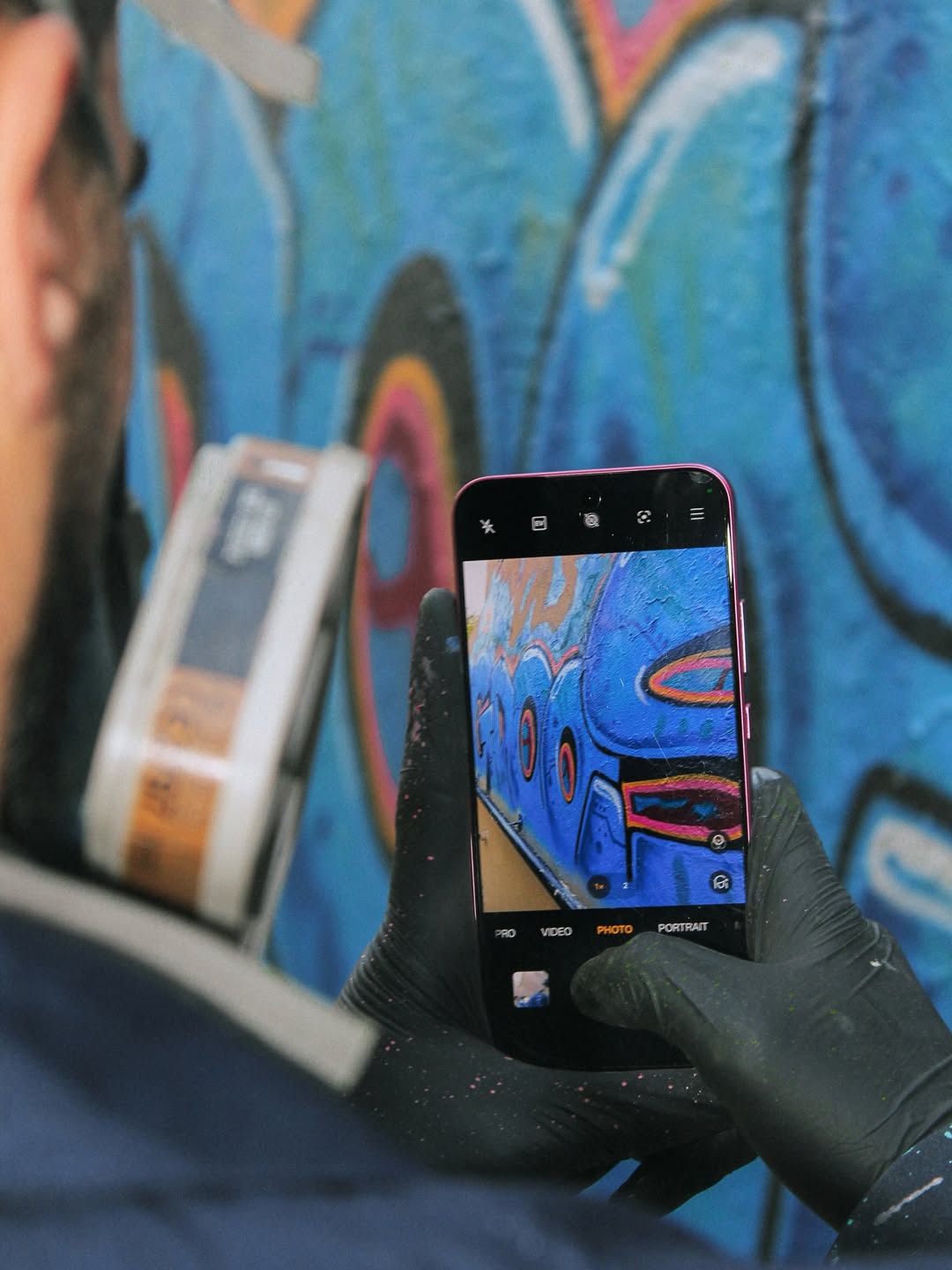 The concept revolved around integrating the phone into my daily practice as a graffiti artist, letting the nature of the work do the talking when it came to specs like durability, water resistance, and battery life.