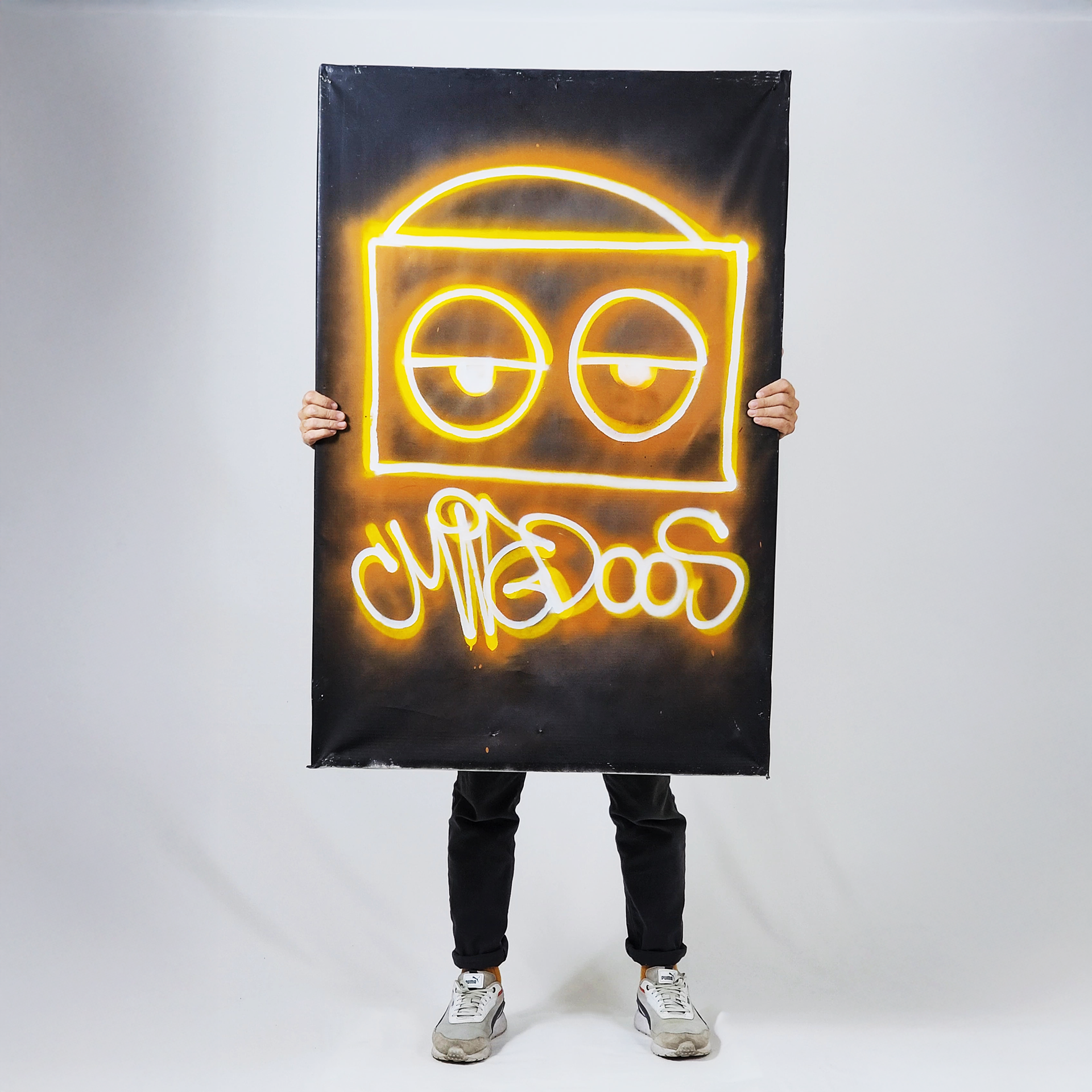This unique piece began as a 2024 Jordanian election sign, repurposed into a vibrant graffiti canvas that embodies sustainability and creativity. Its transformation from political signage to bold art reflects renewal and individuality, making it a one-of-a-kind collector's item with a powerful story to tell.