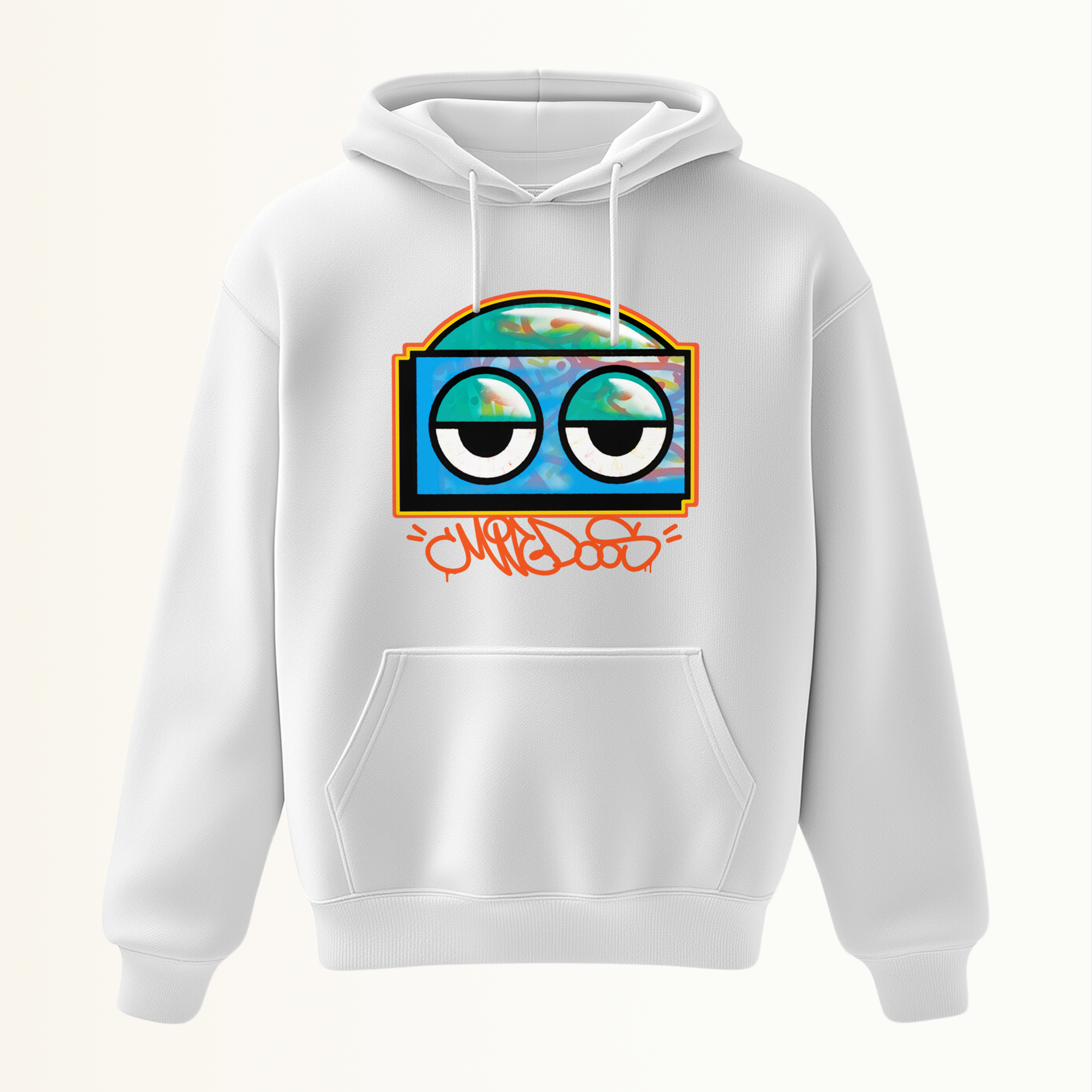 High-quality printed hoodie features MigTheRobot character filled with graffiti tags and MigDooS signature