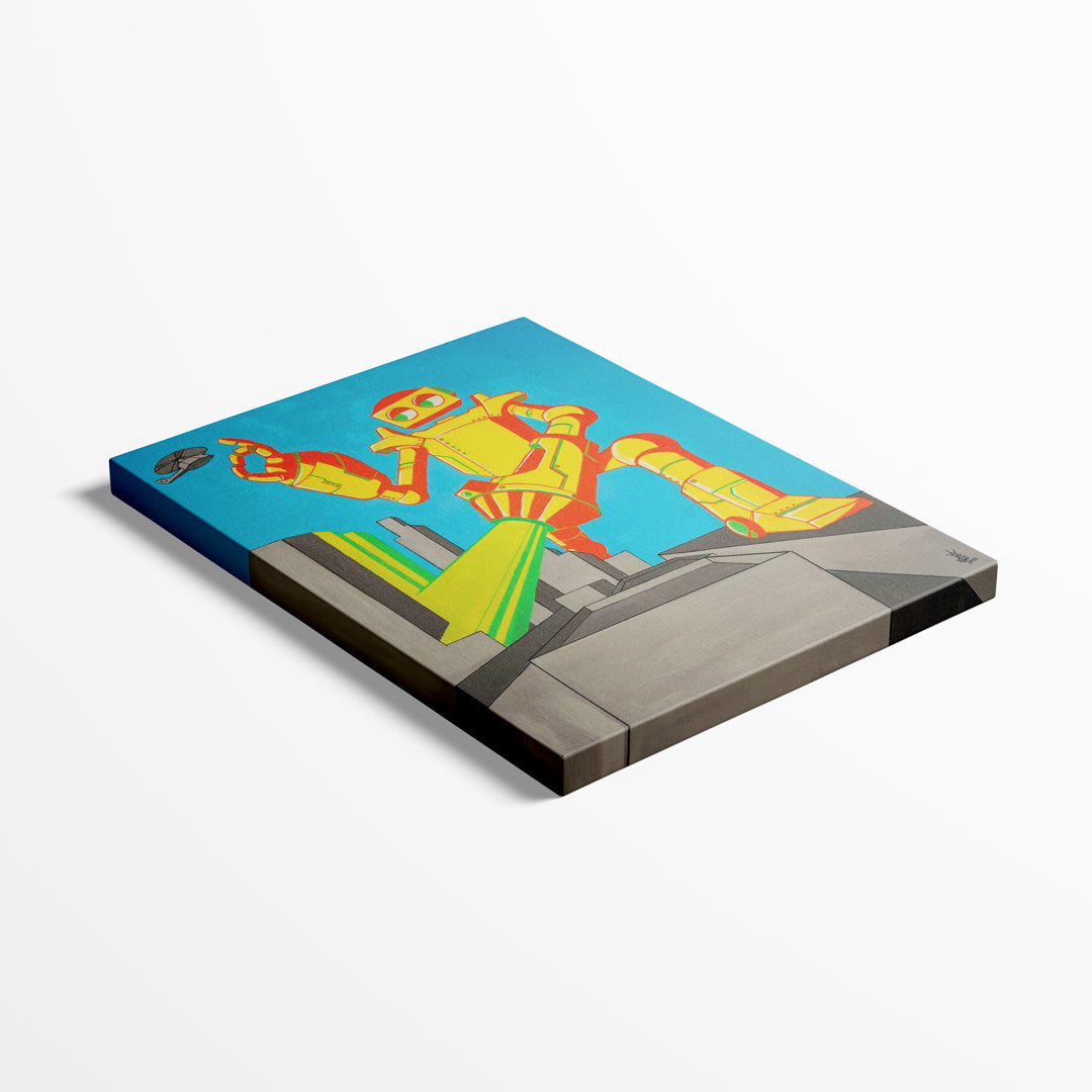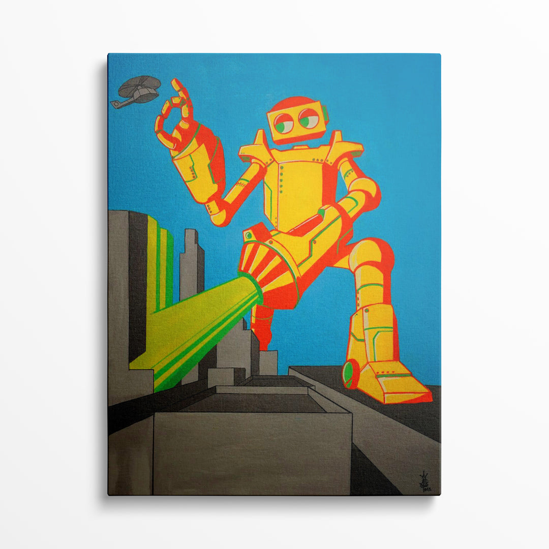 Migatron is an anti-hero character, is seen taking over a grey city by covering its buildings with paint using a paint cannon and flicking a hostile helicopter simultaneously.